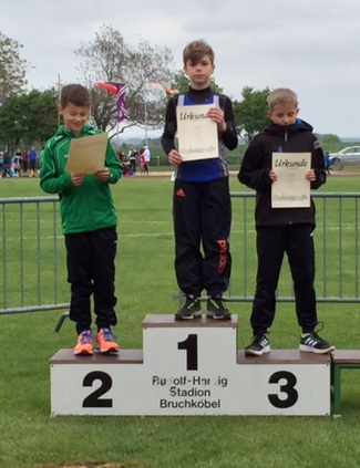 Trotz schwieriger Witterungsbedingungen mit kalten Temperaturen und böigem Wind erzielten die Leichtathleten der TGO beim Bruchköbeler Pfingstsportfest zahlreiche gute Leistungen. Für die beste Platzierung sorgte diesmal Luk Rauschkolb, der mit starken 3,72 m im Weitsprung den Sieg in der Klasse M10 feiern konnte. Auch im 50m-Sprint überzeugte er als Zweiter mit nur fünf Hundertstelsekunden Rückstand auf den Sieger. Dank günstigem Rückenwind knackte Marvin Uhlig (Jugend U18) erstmals die 12-Sekunden-Marke über 100m und erzielte über die doppelte Distanz ebenfalls eine neue Bestzeit. Auch im Hochsprung steht mit 1,74 m nun eine neue Rekordhöhe zu Buche. Für Sarah Rauschkolb (W14) gab es bei starker Konkurrenz aus Frankfurt und Friedberg zwei fünfte Ränge und neue Bestleistungen über 100m und im Weitsprung. Charlotte Weirich freute sich über den Bronzerang im Ballwurf der W11, bei der W10 erreichte Antonia Schlageter den fünften Platz. Juri Weirich (M13) steigerte seine Hürdenbestzeit um mehr als eine halbe Sekunde. Ebenfalls am Start waren Timur Celiker, Sarah Zeiger und Raissa Uhlig