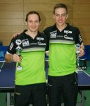Im Herren Doppel schickte die TG Obertshausen mit Gregor Surnin und Torsten Mähner die Titelverteidiger aus dem Vorjahr und mit Lennart Dürr/David Malaika (NSC Watzenborn Steinberg) ein weiteres Doppel ins Rennen. Während Dürr/Malaika in Runde eins ausschieden, wurde es für Surnin/Mähner ein langes und erfolgreiches Turnier. Nach Freilos im Achtelfinale gewannen sie im Viertelfinale gegen Jochen Schmitt und Adam Janicki in vier Sätzen. Im Halbfinale schalteten sie Marvin Werner/Niels Felder in drei Sätzen aus. Ebenso souverän gestalteten sie ihren Auftritt im Endspiel und siegten über Jannik Xu (TTC Seligenstadt)/Fan Bo Meng (TTC Fulda Maberzell) glatt in drei Sätzen. Damit bleibt er Hessentitel im Herren Doppel auch 2018 in Obertshausen.