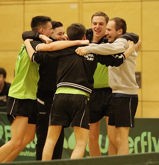 Zum Spitzenspiel der Oberliga Hessen empfing die TG Obertshausen vergangenen Sonntag in der Sporthalle der Eichendorffschule den SVH Kassel. Vor einer Kulisse von rund 100 Zuschauern nutzte die TGO ihren Heimvorteil. Surnin/Mähner setzen sich zu Beginn gegen die Kasseler Schmidt/Bierwirth sicher in vier Sätzen durch. Am Nachbertisch unterlagen Strasser/Dragicevic dem Spitzendoppel Shamruk/Weber glatt in drei Sätzen. Bauer/Dürr stellen durch einen ungefährdeten Drei-Satz-Sieg über die Brüder Hilgenberg die TGO-Führung wieder her. Surnin erhöhte durch einen glatten Drei-Satz-Sieg über Kassels Schmidt auf 3:1, während Mähner gegen Kassels Spitzenspieler Shamruk im fünften Satz knapp mit 10:12 unterlag. Chancenlos war Strasser im Folgeeinzel gegen Kassels Niklas Hilgenberg und unterlag nach drei Sätzen. In bestechender Form präsentierte sich Lion Bauer gegen Weber und gewann nach verlorenen ersten Satz noch nach vier Sätzen. Im dritten Paarkreuz musste Lovre Dragicevic nach vier Sätzen dem Kasseler Marco Hilgenberg gratulieren, während Lennart Dürr sein Einzel gegen Bierwirth zu seinen Gunsten gestalten konnte. Im Spitzeneinzel scheiterte Gregor Surnin nach vier Sätzen an Kassels Spitzenmann Shamruk. Beim Gesamtstand von 5:5 erteilte Mähner dem jungen Schmidt eine Lehrstunde und ließ ihm in drei Sätzen ganze vierzehn Punkte. Jedoch konterte der SVH mit einem Vier-Satz.Sieg Webers gegen Strasser. Lion Bauer erspielte gegen N. Hilgenberg einen glatten Drei-Satz-Erfolg zur 7:6 Führung. Dragicevic unterlag im darauffolgenden Spiel Bierwirth. In der Endphase der Partie überschlugen sich die Ereignisse. Während am Tisch 1 das Schlussdoppel Surnin/Mähner sich nach vier Sätzen gegen Kassels Shamruk/Weber durchsetzen konnten, kämpfte am Nachbartisch Lennart Dürr gegen Marco Hilgenberg um den Siegpunkt für die TGO. Nach jeweils zwei gewonnenen Sätzen beider Kontrahenten musste der fünfte Satz die Partie entscheiden. Hier zeigte der junge Obertshäuser die besseren Nerven und siegte in der Verlängerung mit 14:12 zum 9:7 Gesamtsieg. Damit ist die TGO in der Oberliga weiterhin auf Meisterschaftskurs.