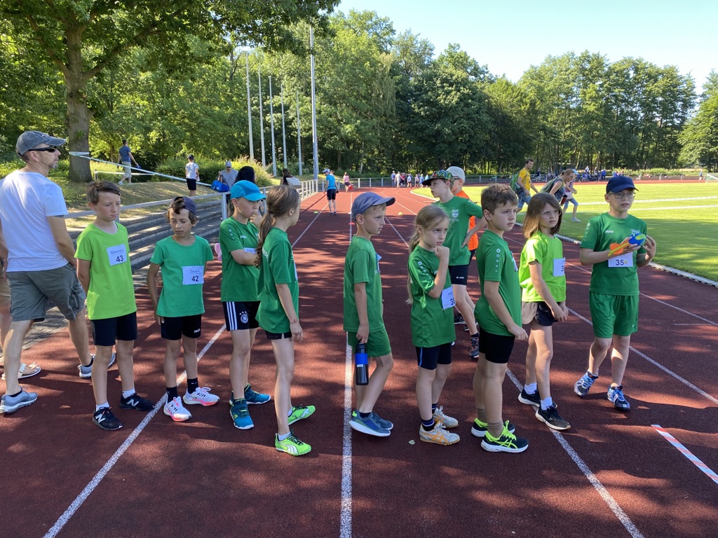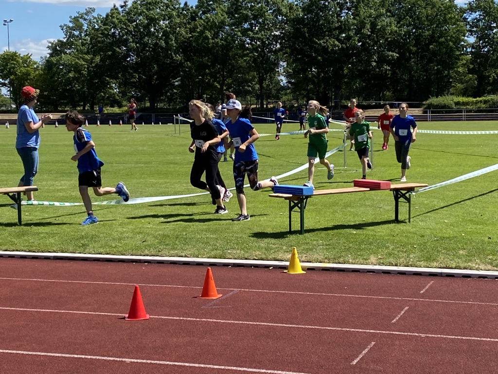 Auch aus sportlicher Sicht konnten die Trainer zufrieden sein: Das U12-Team der TGO zeigte beim sehnlichst erwarteten „Heimspiel“ einen guten Wettkampf und sammelte vor allem beim Hochsprung sowie im anschließenden Stadioncrosslauf fleißig Punkte. Am Ende belegten die „TG Ollis“, bestehend aus Jonas Kötzel, Lotta Ebinger, Nils Ripper, Aitana Michalak, David Stark, Clara Stratmann, Jonas Grenzner, David Küper und Maximilian Rozek, den fünften Platz.