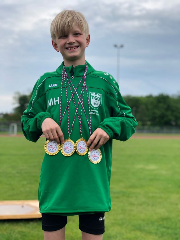 Einen fulminanten Einstieg feierte Marc Holz, der die Altersklasse M10 dominierte und seine Vielseitigkeit mit Siegen im Weitsprung, 50m-Sprint, Ballwurf und über 800m unter Beweis stellte. Ebenfalls Kreismeister wurde die 4x75m-Staffel der U14 mit Louis Bergk, Tobias Hentschel, Viktor Sirbu und Ben Bogdahn.