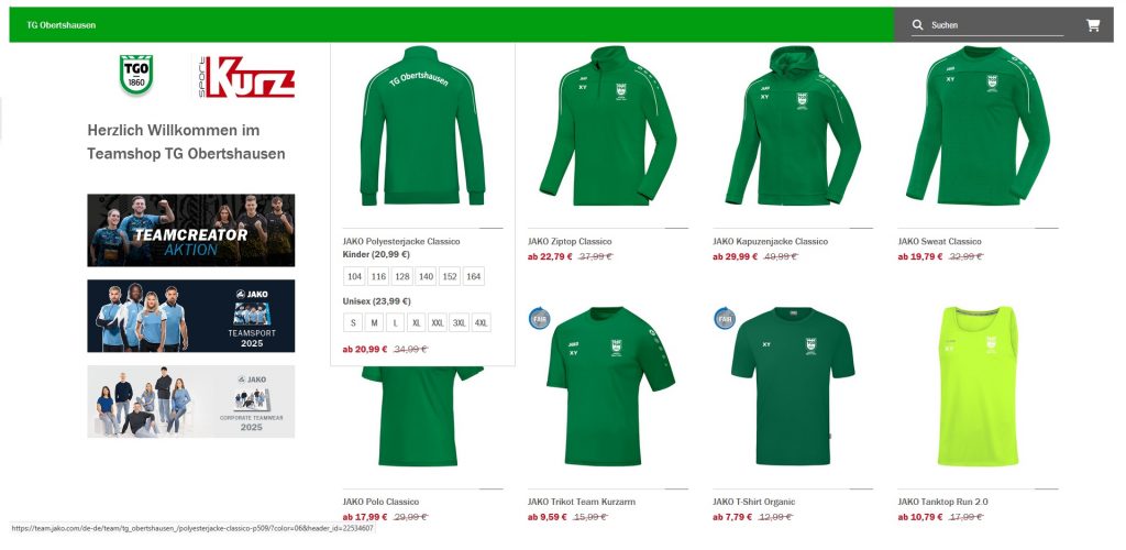 Der Shop für die Vereinskollektion bei unserem Partner Sport-Kurz in Heusenstamm wurde überarbeitet und hat einige neue Funktionen, zum Beispiel auch eine Teambestellung. Schaut vorbei!