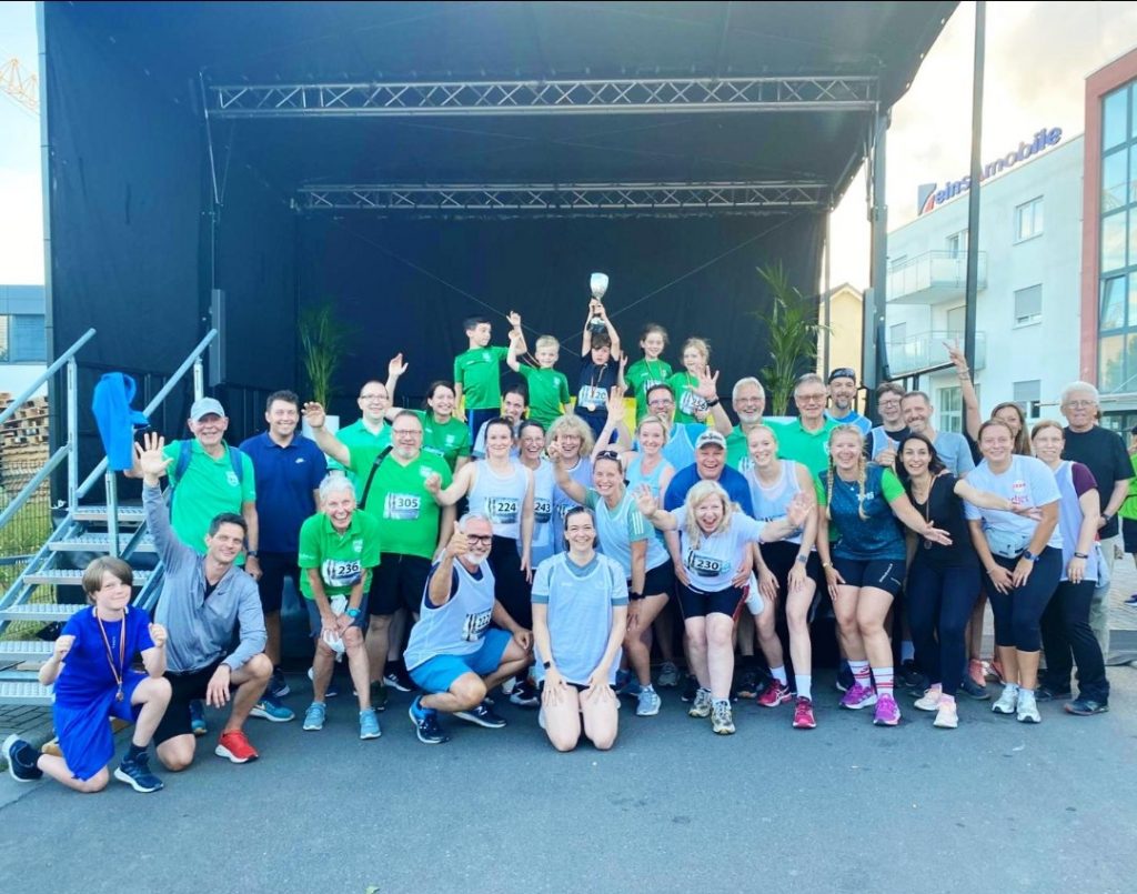 Das primäre Ziel des Obertshausener Gewerbelaufes ist der Einsatz für die gute Sache: Die Startgebühren werden an die „Clowndoktoren“ und die Stiftung für schwerstkranke Kinder „Bärenherz“ gespendet. Und doch hatte die TGO in diesem Jahr auch ein sportliches Ziel: Das Team mit den meisten Teilnehmern stellen. Denn es geht nicht um Zeiten oder Platzierungen, sondern nur ums Mitlaufen, und das taten ganze 73 Sportler im Alter von 6 bis über 90 Jahren mit den Trikots der TGO! Somit konnte Teamführerin Sarah Zeiger am Ende den großen Pokal in Empfang nehmen. Im Anschluss wurde natürlich noch ordentlich gefeiert. Vielen Dank an das Team des Veranstalters „Rehapoint“ und alle Läufer, die für uns an den Start gegangen sind!!!