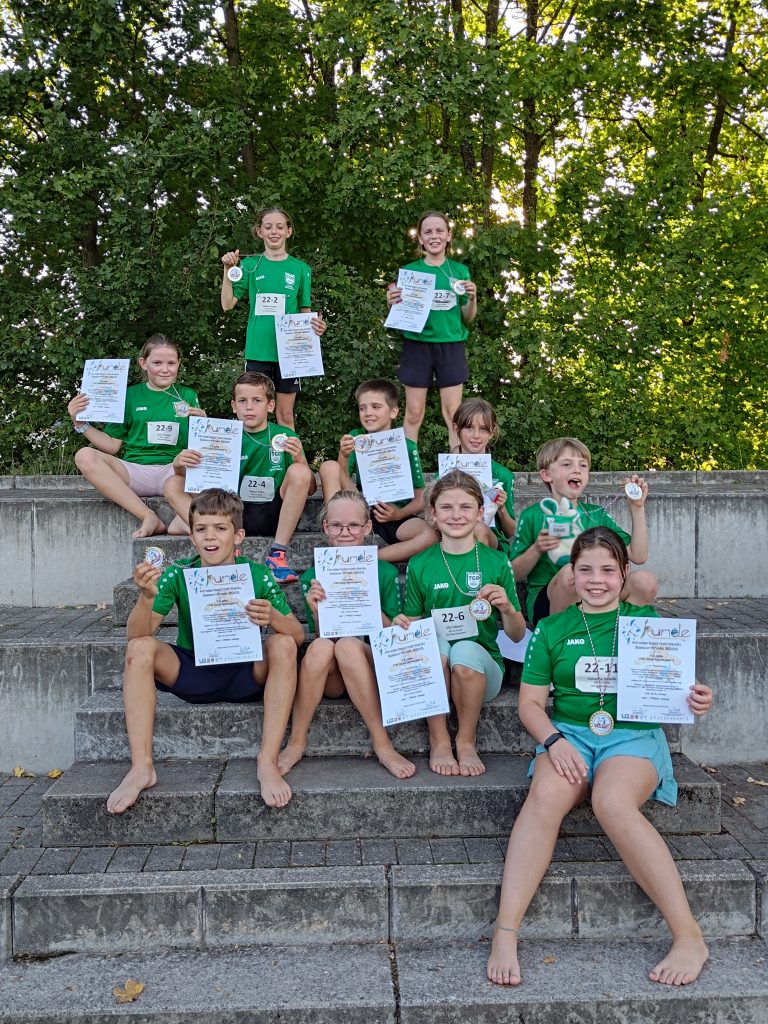 Auf Platz sieben beendete das U8-Team den ersten Teil des Wettkampftages. Nach verletzungsbedingtem Ausfall einer Athletin bei der Hindernisstaffel war die ohnehin dünn besetzte Mannschaft nur noch mit der Minimalzahl von sechs Kindern am Start, womit sämtliche Ergebnisse in die Wertung eingingen. Trotzdem schlugen sich die Jüngsten wacker und kämpften sich auch im abschließenden Team-Biathlon tapfer durch, dessen Strecke Strecke aufgrund eines Kommunikationsfehlers seitens der Organisatoren doppelt so lang war wie geplant. Ein gutes Endergebnis für das noch sehr junge Team war die Belohnung.
