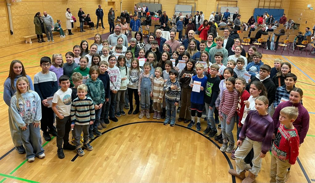 Rund 180 Kinder und Jugendliche haben in diesem Jahr erfolgreich die Prüfungen für das Deutsche Sportabzeichen bei der TGO absolviert. Ein Teil davon bekam am vergangenen Samstag die Urkunden, Anstecknadeln und T-Shirts überreicht. Neben dem Leiter der Sportabzeichen-Gruppe Wilfried Nowotnik gratulierten Bürgermeister Manuel Friedrich, TGO-Vorsitzende Katja Fabricius-Gawlik und die Sportabzeichenbeauftragte des Sportkreises Offenbach Mareike Bauer.